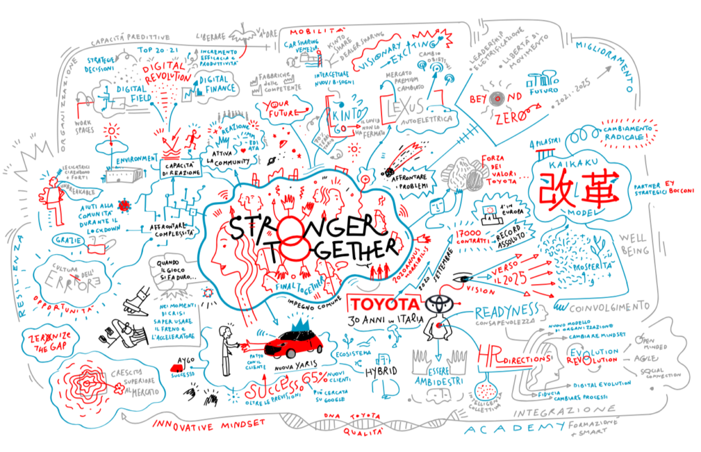 Questo tipo di attività di registrazione viene chiamata “graphic recording”